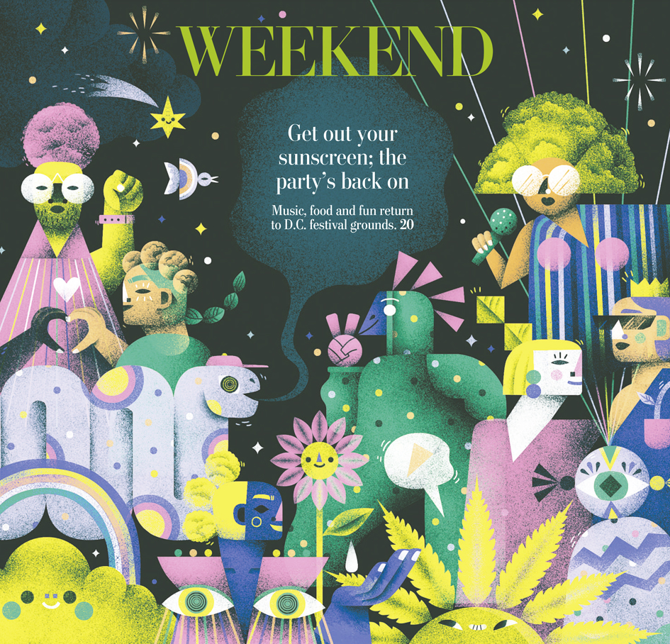 The first one illustrates three upcoming music festivals: National Cannabis Festival, Project Glow and Brocolli City Festival.